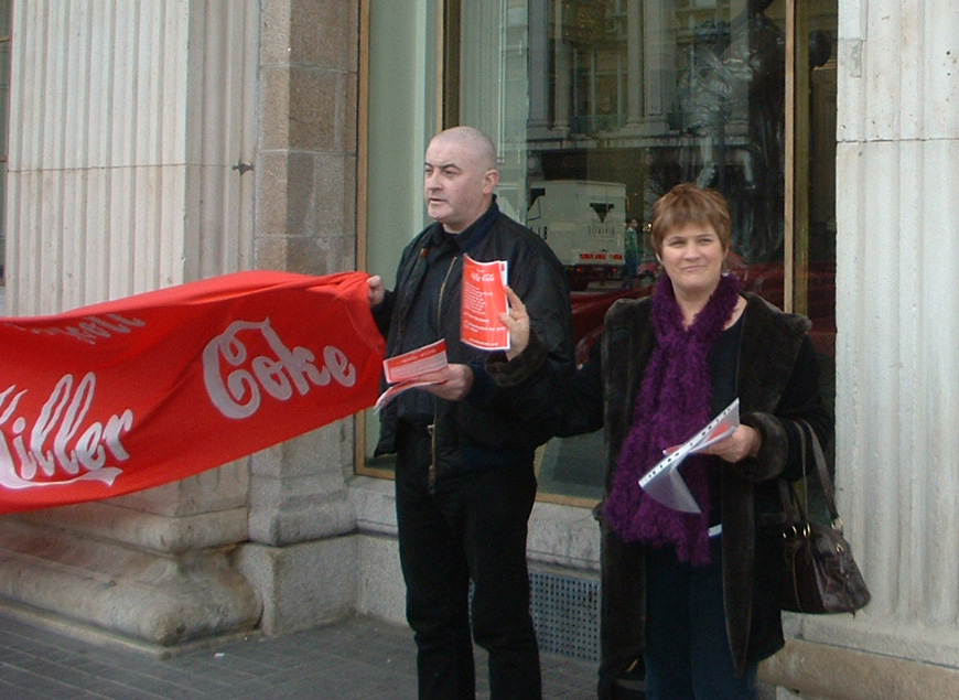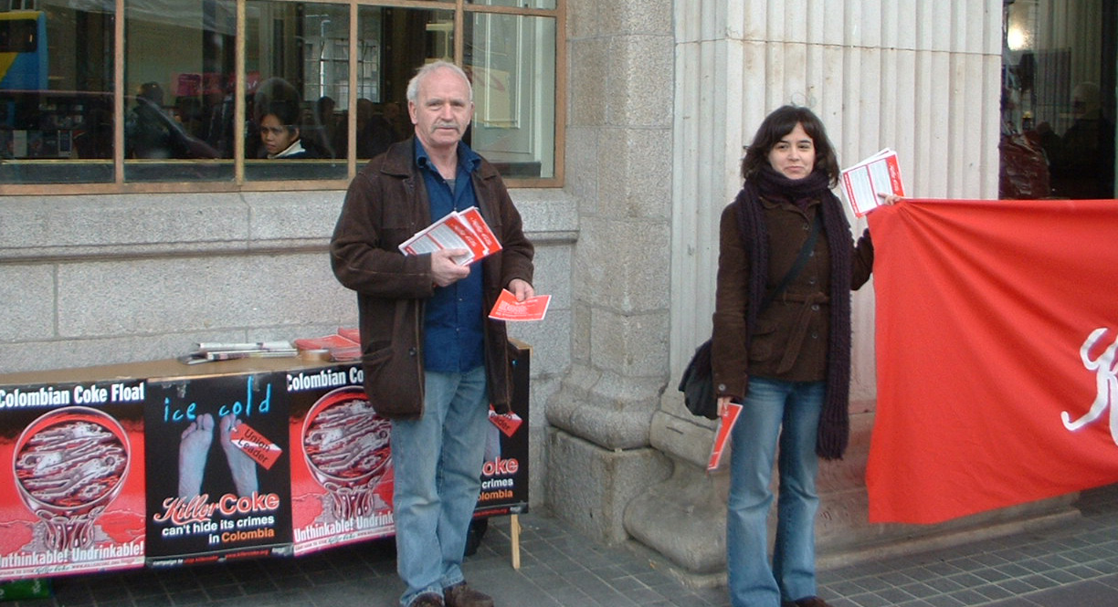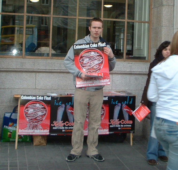 The new boycottt killer coke banner brought lots of extra attention to the campaign. The international movement to make coke accountable for its crimes against Colombian trade unionists is growing in momentum with a vote taking place in the next few weeks in the UK that could lead to the cancelling of exclusive Coke contracts with well over 200 universities all affiliated to the National Union of Students (NUS).