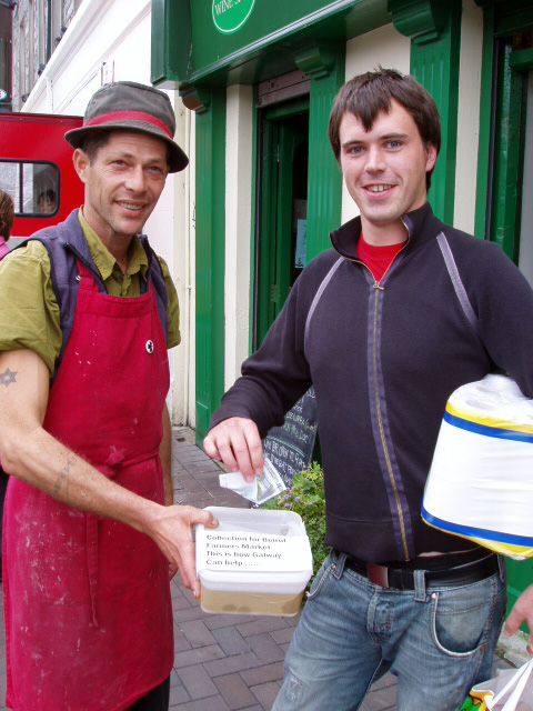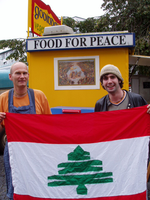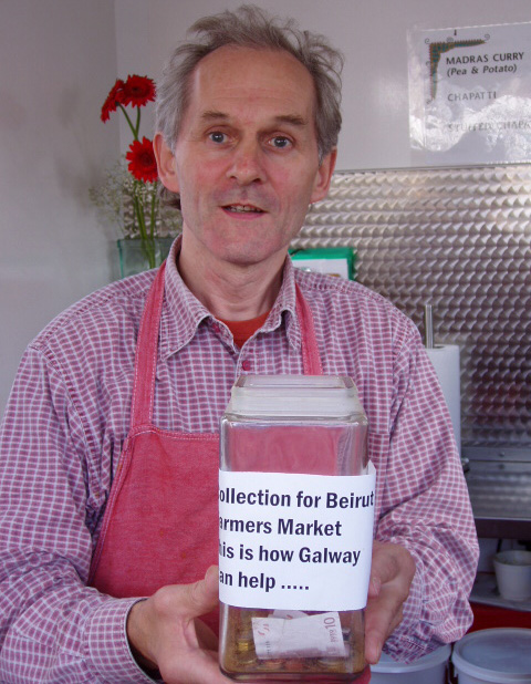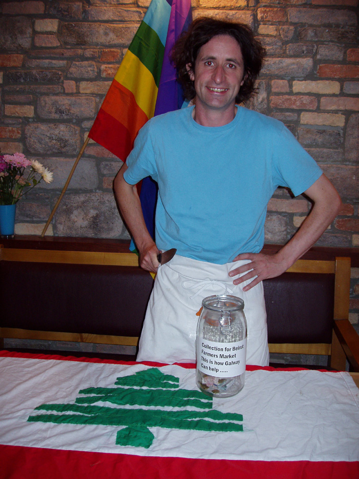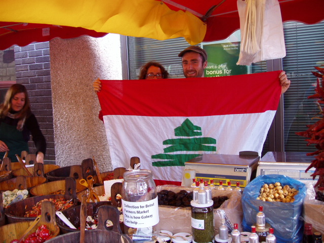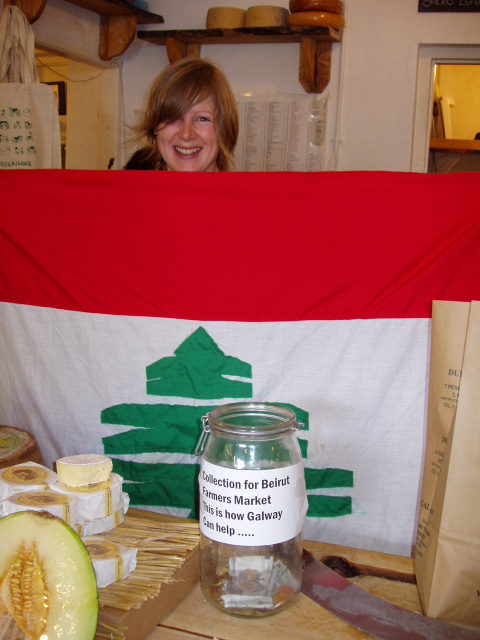 ![]() "Blood Drenched Children". "We Are Lost". Aoibheann McNamara, proprietor of the Ard Bia restaurant in Quay Street and Seamus Sheridan, head honcho of Sheridan's Cheesemongers in Church Yard Street organised a collection today at the farmers’ market in Church Yard St in order to assist the beleaguered Lebanese who run the slow food market in Beirut - the moneys raised will be divided among the various families struggling to survive in their city and country viciously wasted by the Israelis. Aoibheann ; “saddened constantly as dear friends email me from Beirut unable to evacuate as they are not ‘precious foreigners’. They email images of blood drenched children, they email lines like ‘we are lost,’’’ clearly, was not prepared to stand idly by wringing her hands and sobbing crocodile tears but did something. She liased with Seamus and today’s pristine empathy was the result – Seamus is the noted anti-war activist who, prior to the criminal attack on Iraq, closed his shop in order to march in a Galway Alliance Against War organised demonstration along with his staff, all clad in their white work gear. In a 24th August article in the Galway Advertiser (see link) she vowed to return to Beirut along with Seamus “to personally give the money to Kamel Mouzawak (the head of Slow Food Lebanon who started and heads the first farmers’ market there) to distribute to the families in most need”.
