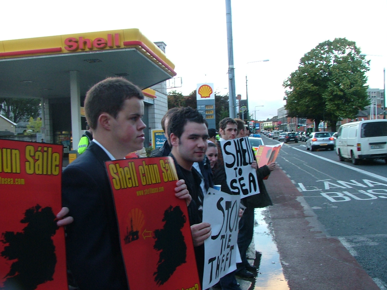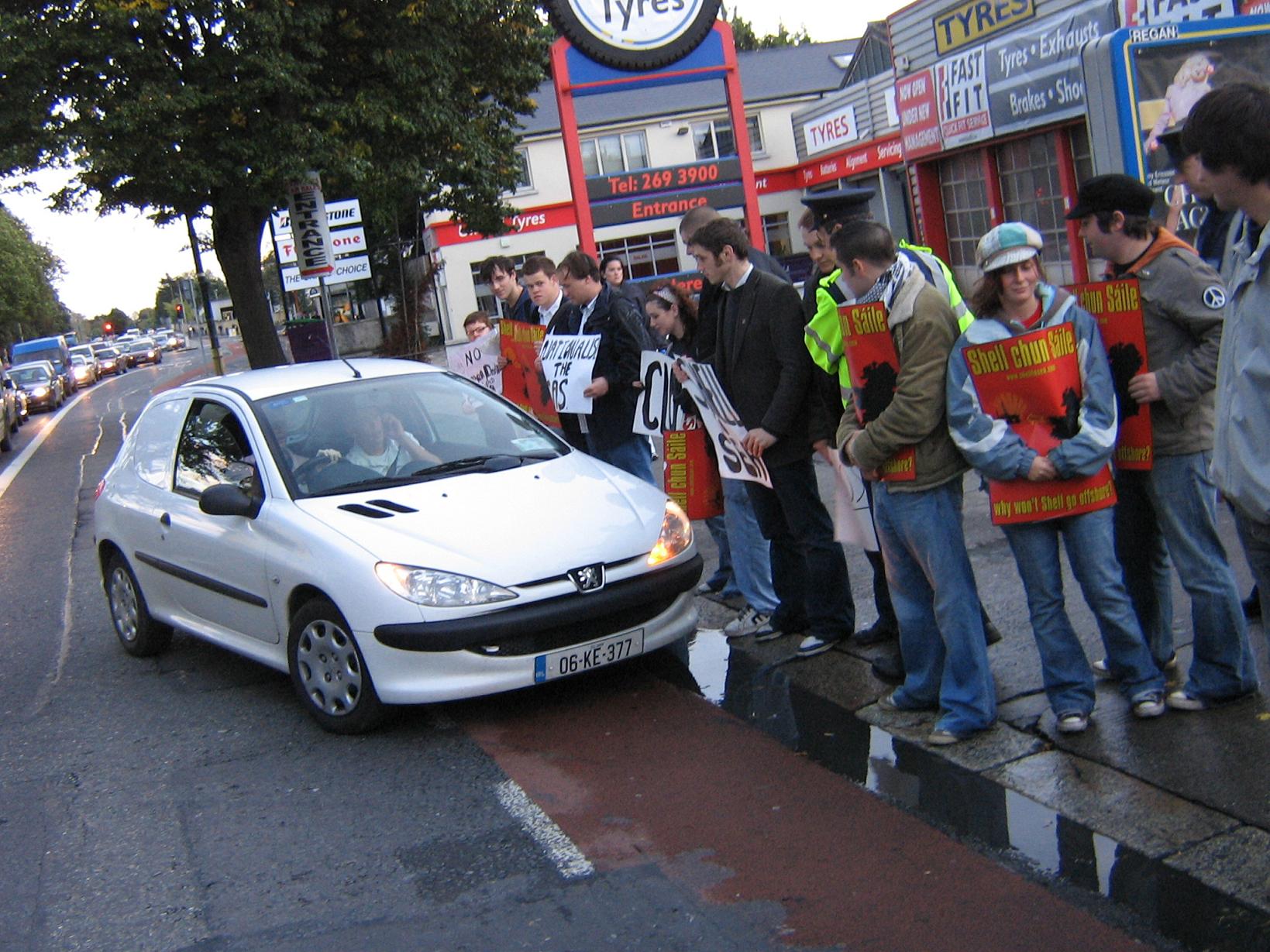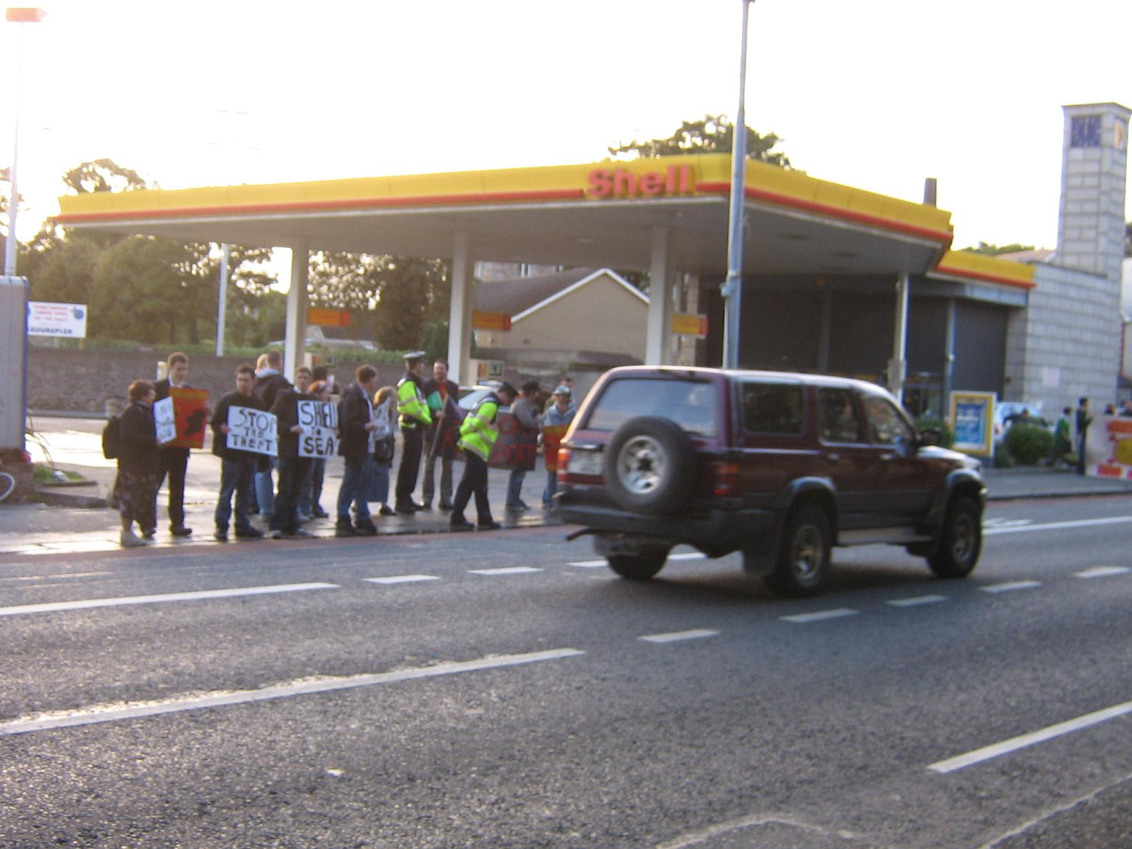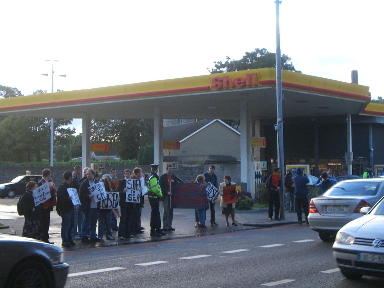 About a dozen people - shadowed by a similar number of cops - picketted the Shell station on the Tallaght bypass last night from about 5:30 - 7:00. It was a very effective protest with only about half a dozen cars going in to the station at what would normally be a very busy time