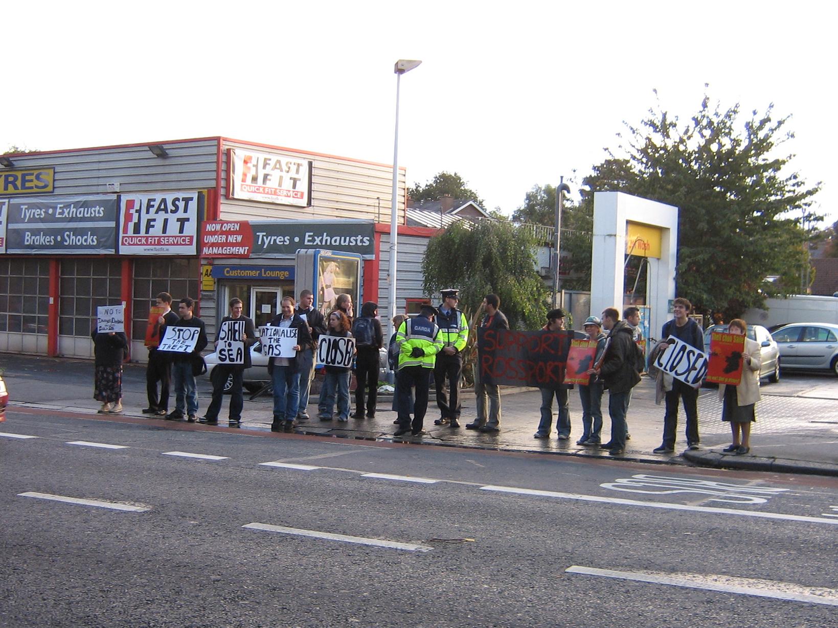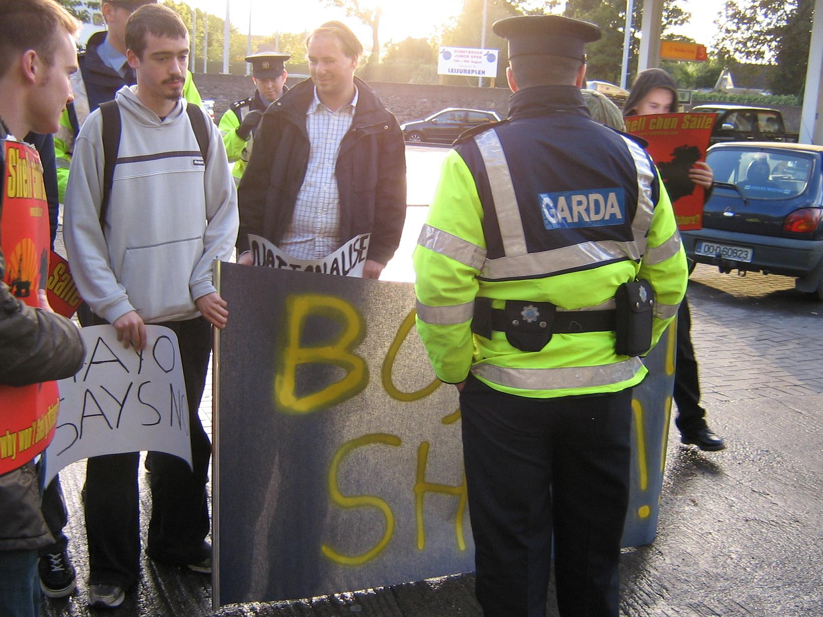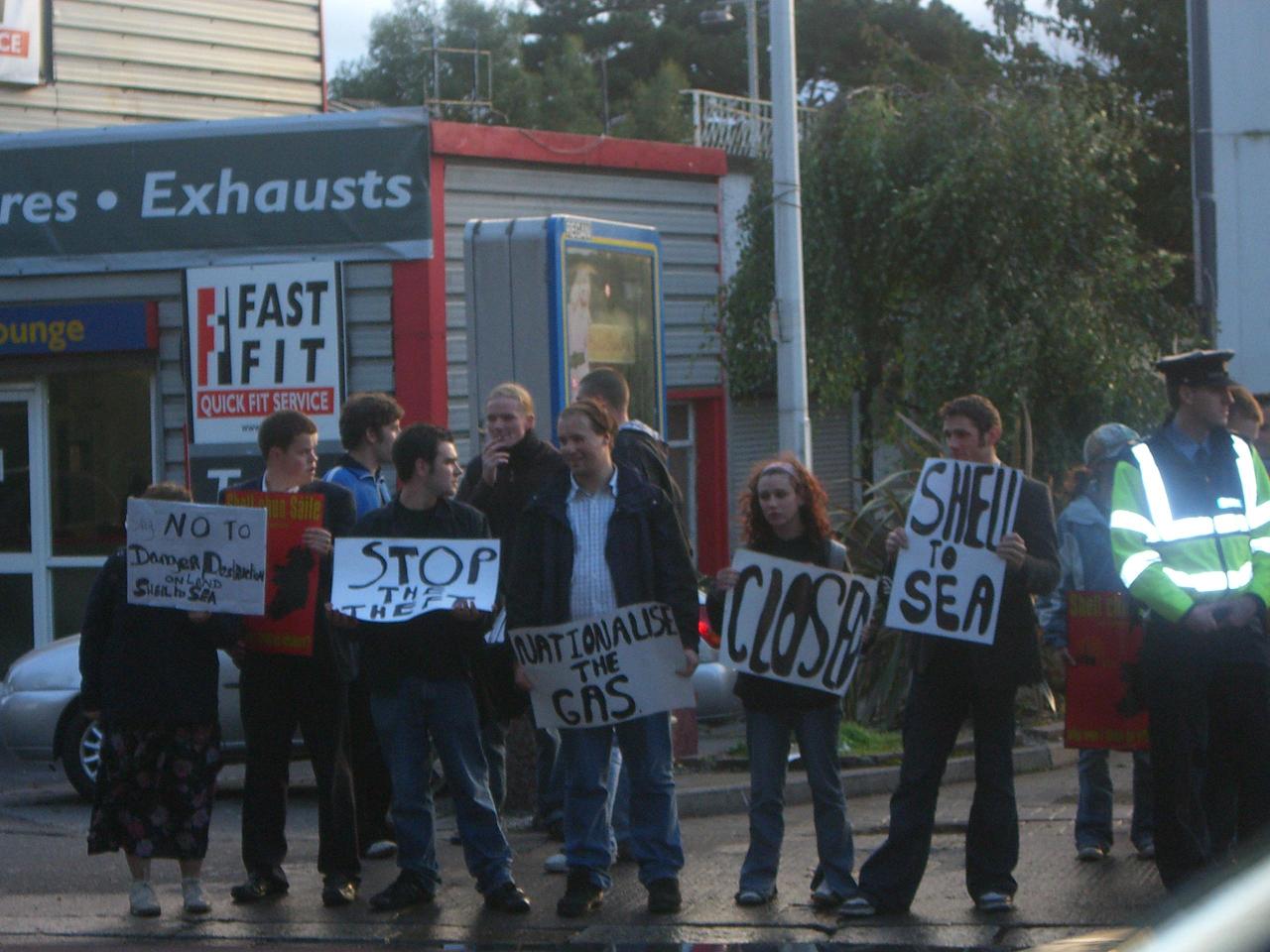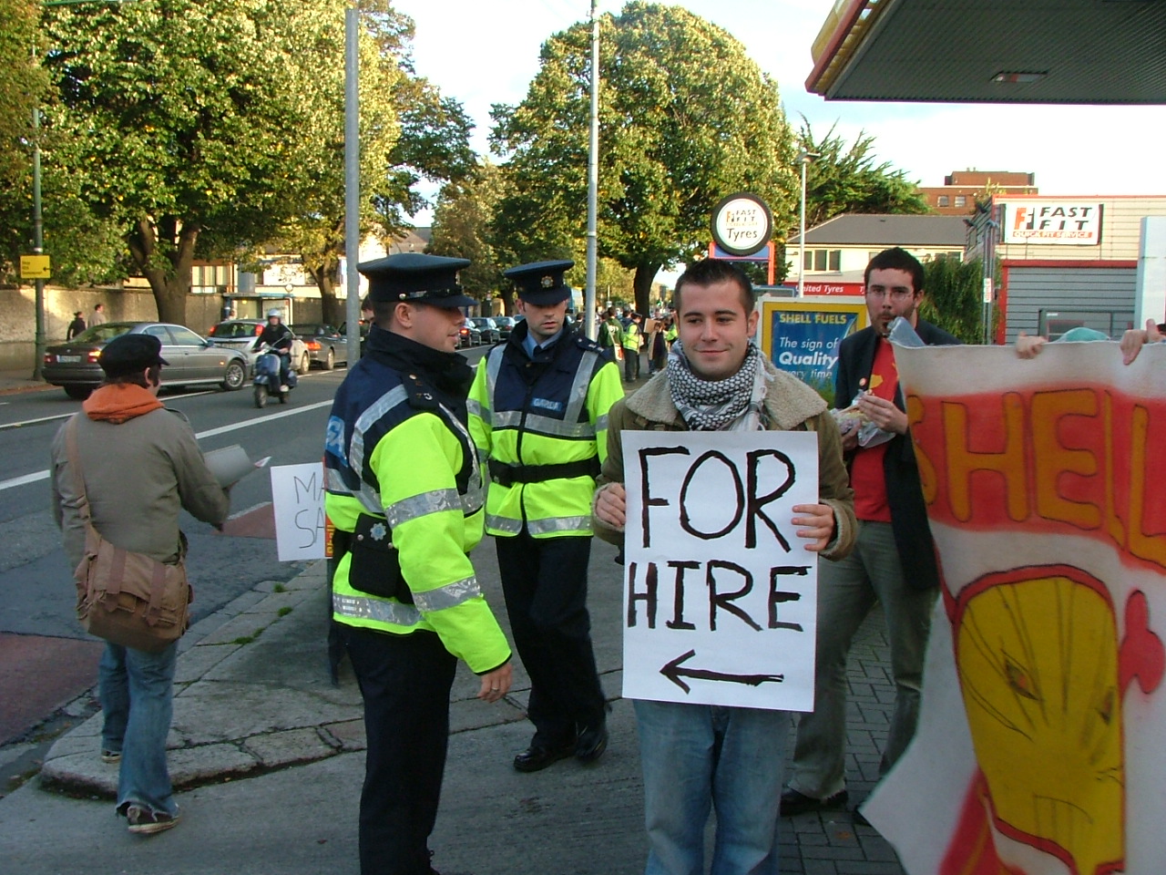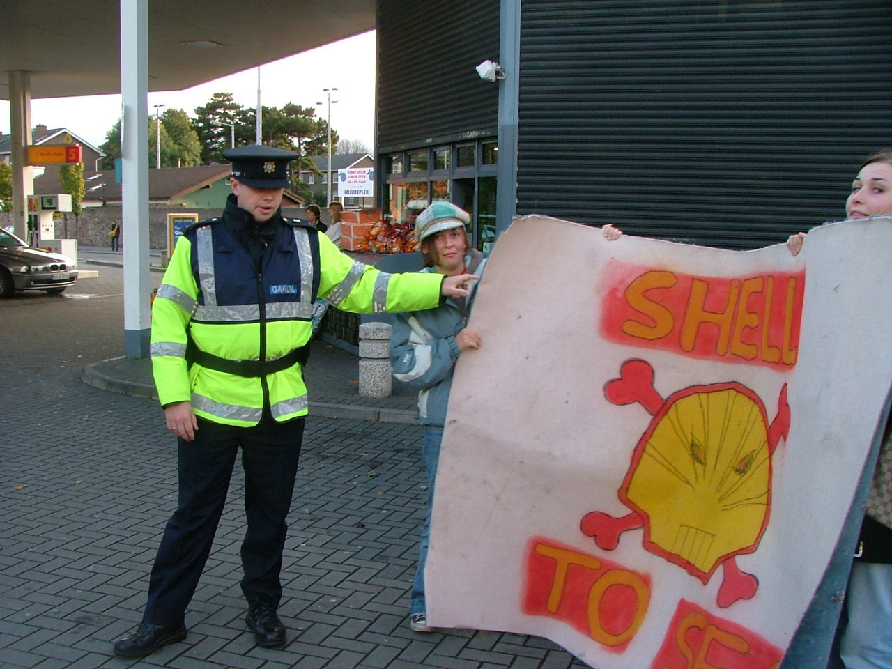 About a dozen people - shadowed by a similar number of cops - picketted the Shell station on the Tallaght bypass last night from about 5:30 - 7:00. It was a very effective protest with only about half a dozen cars going in to the station at what would normally be a very busy time