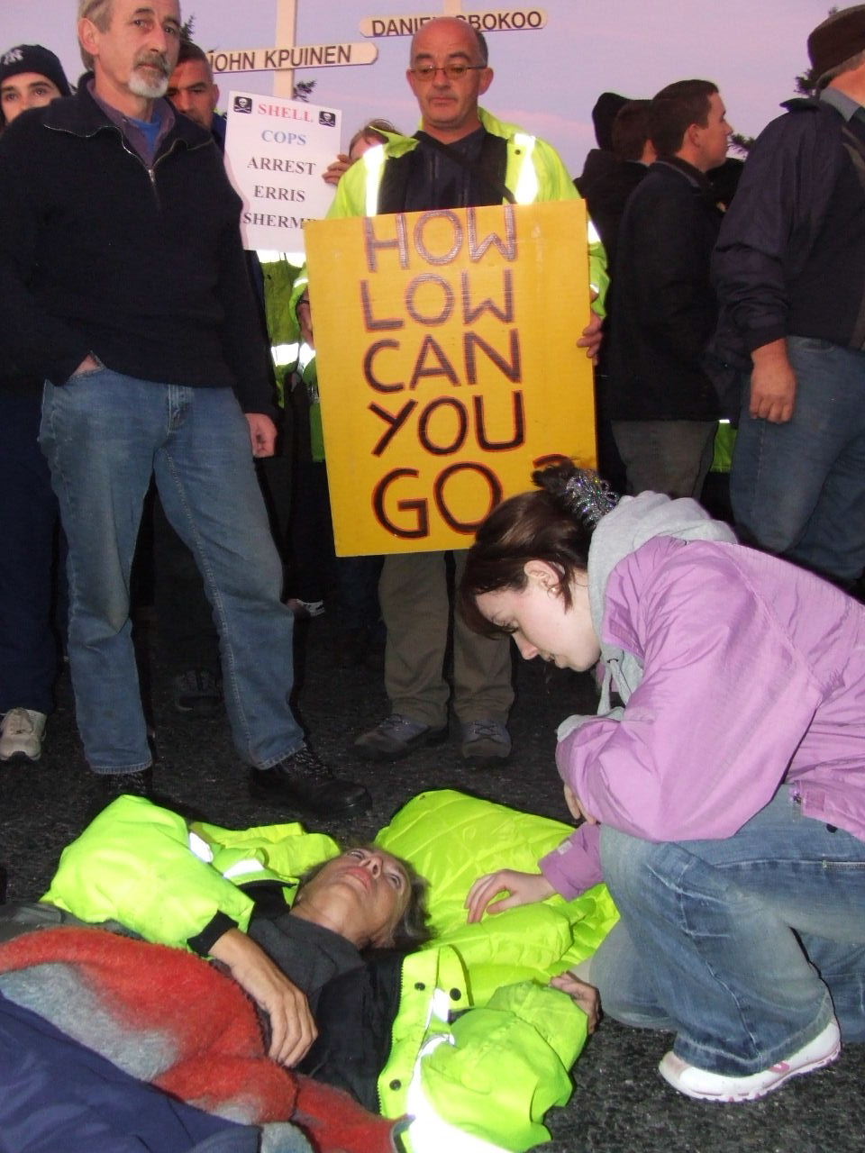 Neutral, Shell are responsible for death and destruction in Nigeria and other parts of the world. The people of Erris are on the frontline against the exploitation of our western seaboard and the destruction of their own way of life. Have you ever faced that? Do you know what it feels like? Do you think that when a gard can push someone to the ground and get away with it, while if a protestor lays a finger on a gard they can be done for assault things are not perhaps a bit unbalanced? Would you remain "peaceful" when faced with what the people of Erris are faced with.