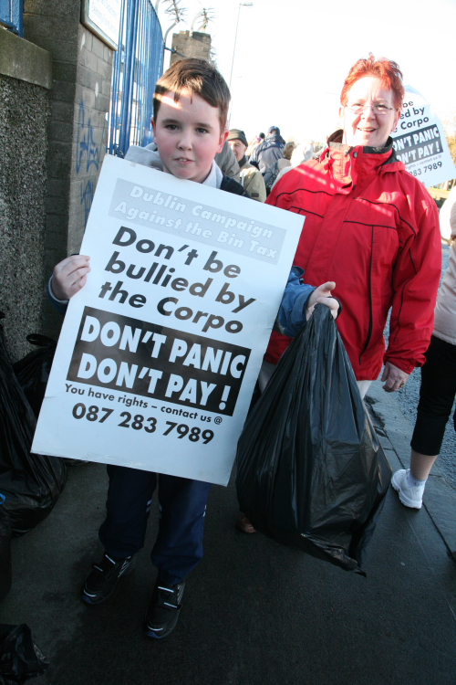 Since the introduction of refuse charges in Drogheda 6 years ago and the privatisation of the bins 4 years ago, charges have skyrocketed. Its 10 Euro for a bin tag now and its set to rise again soon. You have to buy a seperate tag for the green bin - if they are trying to encourage recycling Why charge extra? If you look around the country you will see that refuse charges lead to privatisation and price rises and not an increase in recycling. What does increase recycling are free municipal recycling facilities.