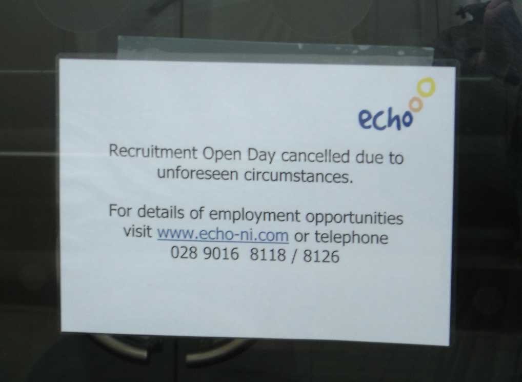 The We Won’t Pay Campaign claimed their protest today a victory after it was announced that Echo Managed Services, the company responsible for recovering unpaid water charges on behalf of the new water company Northern Ireland Water Ltd., had cancelled it’s much publicised open recruitment day.