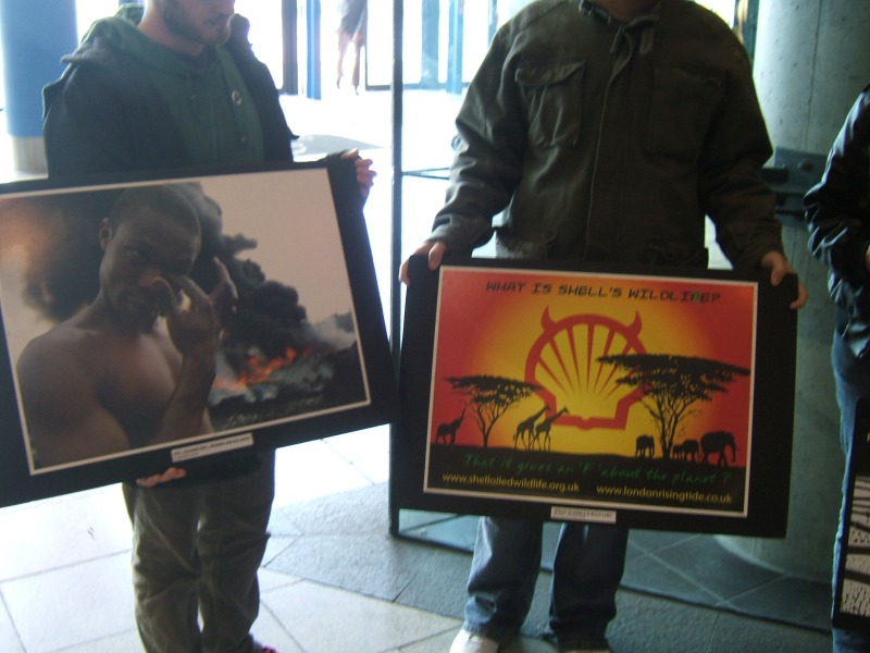 We were lucky enough that the security was busy through most of the protest with other events that were going on in the arena at the same time. However, as the protest went on a number of them did come up to us and they asked us to leave. We told them that we were staying until we finished our protest (we had agreed to stay until 1pm) and so the head security guard radioed through to the desk to have the police called. As this was going on we continued to hand out leaflets to people going into W5, and we ended up staying an extra 10 minutes or so to see what would happen. Eventually though we wrapped it up and left without any trouble.
