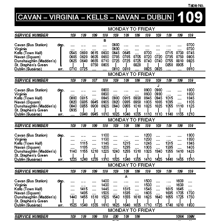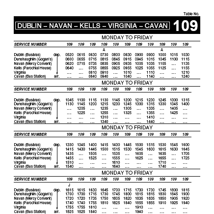 Here are the bus schedules for Dublin - Hill of Tara trip