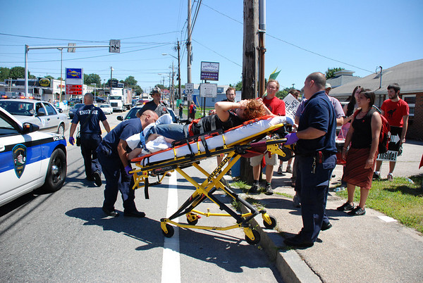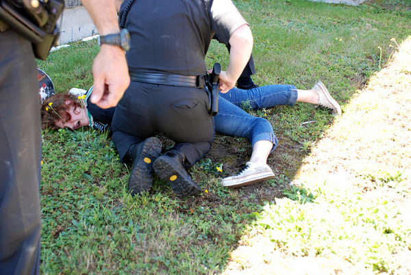 Marchers were surrounded and attacked by a large force of police, who used mace spray (a chemical agent) and dislocated the leg of one worker, Alex Svoboda, who now requires at least two operations and extensive rehab as a result.