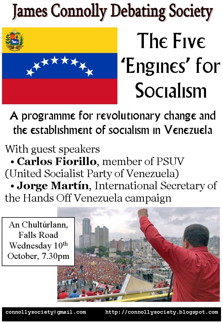The James Connolly Debating Society will be hosting a public meeting on the continuing Bolivarian revolution in Venezuela.