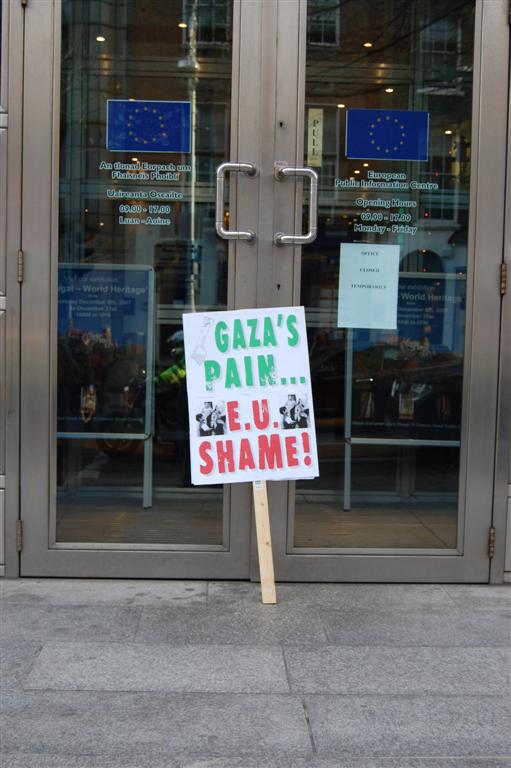 The EU closed their offices in response to the protest Why: In a nutshell, the 13th was the day the EU are signing into effect the 'Lisbon Reform Treaty'. The IPSC used this opportunity to highlight the EU's role (via the International Quartet) in imposing an aid embargo on Gaza, as well as the general eclipsing of the Gazan crisis by the frenzy surrounding the Annapolis conference.