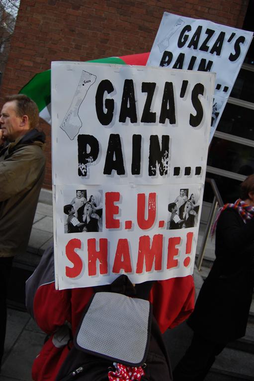 Leave the big words at home. The bottom line is that decent people are suffering. The E.U. with its resources has many ways to help theses people if they cared enough to do something. It’s not a matter of money alone as you seem to think. As we argue the point here people in Gaza are feeling the effects of the E.U.’s inhumane treatment. Well done IPSC.