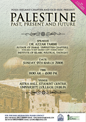 'Awesome'??? Use your head. FOSIS is a rightwing, fundamentalist Islamist organization with links to the Muslim Brotherhood, an organization that would soon put paid to any of you if it had half a chance. As for Tamimi, he applauds suicide bombers in Israel. In other words, he sanctions and praises murder. And you think this conference is something to get excited about? Why does the left go on pummelling itself in this way, joining hands with Islamo-fascists who are only using you to further their own not very peaceful ends.