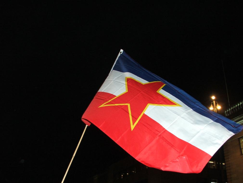 I saw you speaking to Kevin briefly at the demo. And you were questioned about the flag. The yugoslav flag was indeed a sad sight. Hardly inspiring, definitely not necessary. Why bring it?