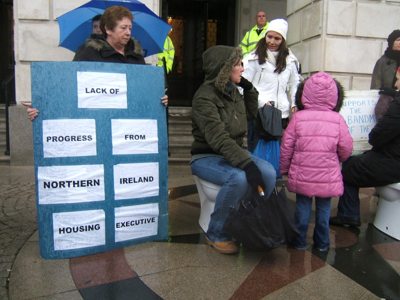 Residents of the Village area of South Belfast held a protest yesterday (Tuesday 22 January) outside Stormont against the housing conditions in which many people are forced to live and against the inaction of the Department of Social Development and NI Housing Executive in dealing with these problems.