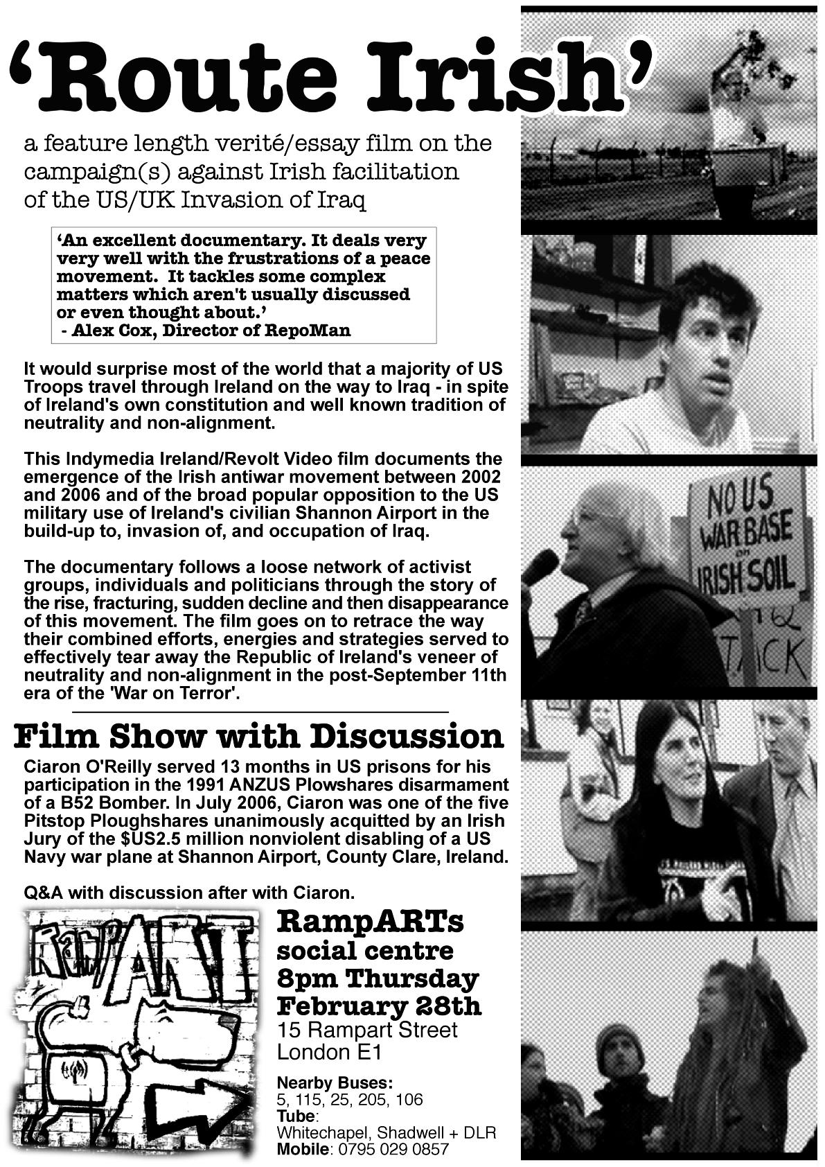 The Route Irish" Feb 28th, screening is definitely going ahead despite RampARTS losing in court this week.