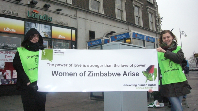 Noeleen Hartigan, Programmes Director Amnesty International Irish Section said: “Every year around Valentine’s Day members of WOZA distribute roses to members of the public and the police. The aim of this peaceful protest is to encourage Zimbabweans to stand up for their children in a time of extreme economic hardship and with elections looming in March.