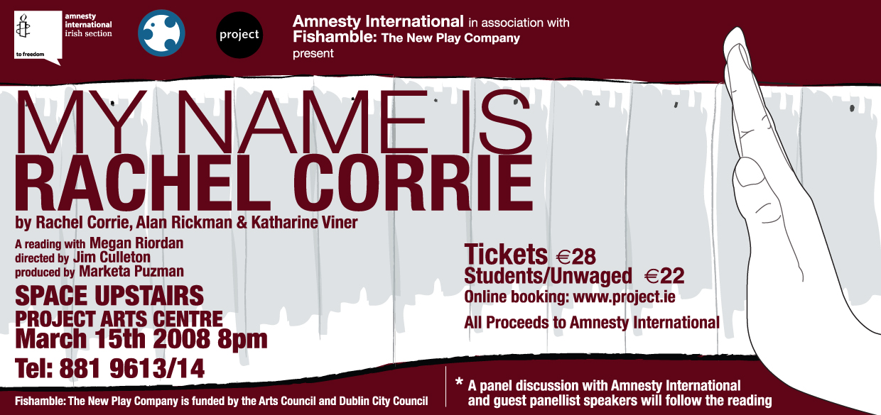 On the fifth anniversary of Rachel's death, Amnesty International in association with Fishamble: The New Play Company are pleased to present this special one-off reading of the play.