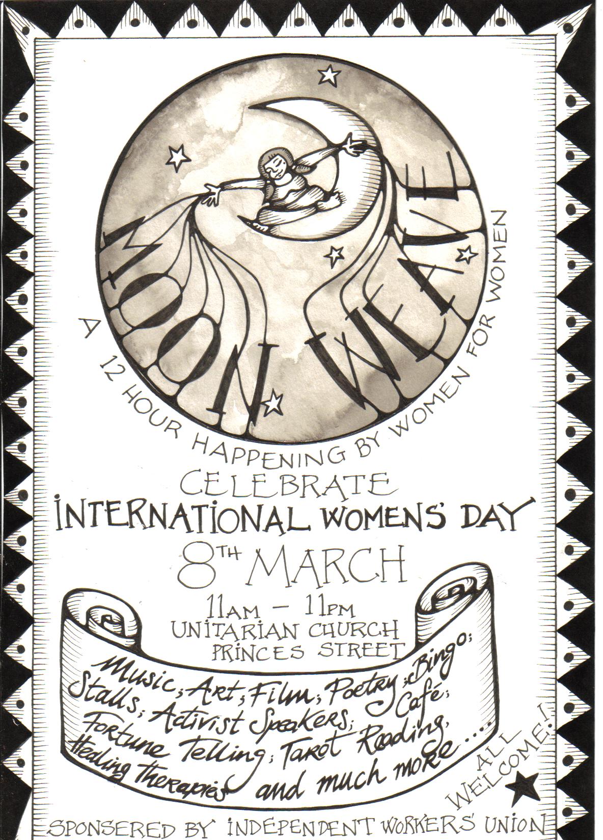 Moonweave is a twelve hour event bringing together women from all over Cork city, and parts of the country, in a mixed programme of art, music, film, political activism, crafts, healing and other activities. Its name suggests a weaving together of all these different strands of women's culture.