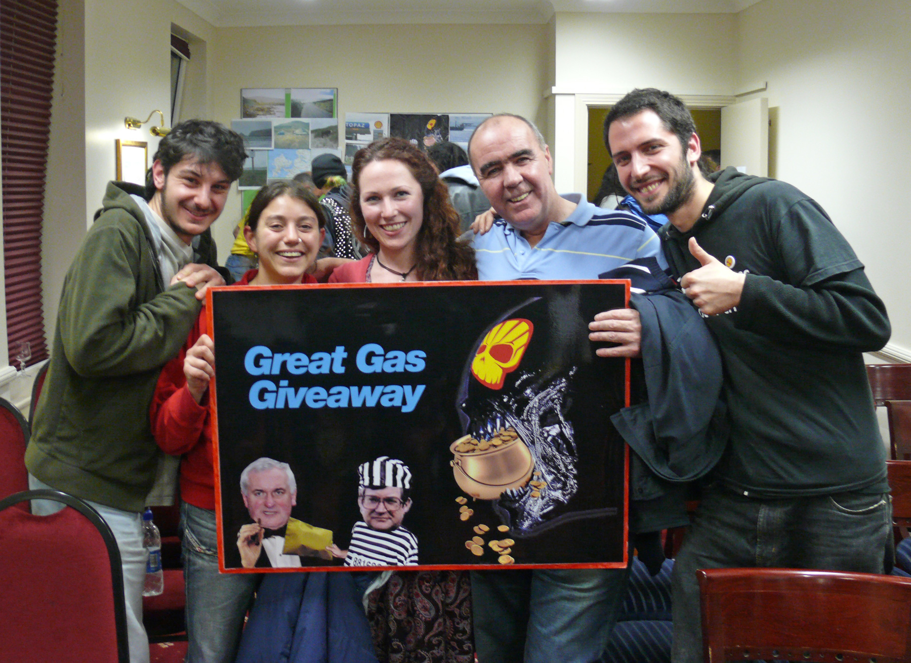 We, the undersigned, call upon our Government, as an urgent priority at this desperate time of recession, to renegotiate the deal done in 1992 with the companies prospecting for oil and gas on the Irish Continental Shelf. This deal effectively gave away the potential profits of the Corrib Gas Field, the Porcupine Basin and Rockall to the shareholders of Shell, Statoil and other energy and exploration companies rather than to the people of Ireland. We demand that the following principles (laid down by Minister Justin Keating, 1975) be revived as the basis of re-negotiation: