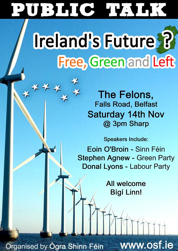 As part of their National Congress, Ógra Shinn Féin are hosting a public talk titled; ‘Ireland’s Future? Free, Green and Left’.